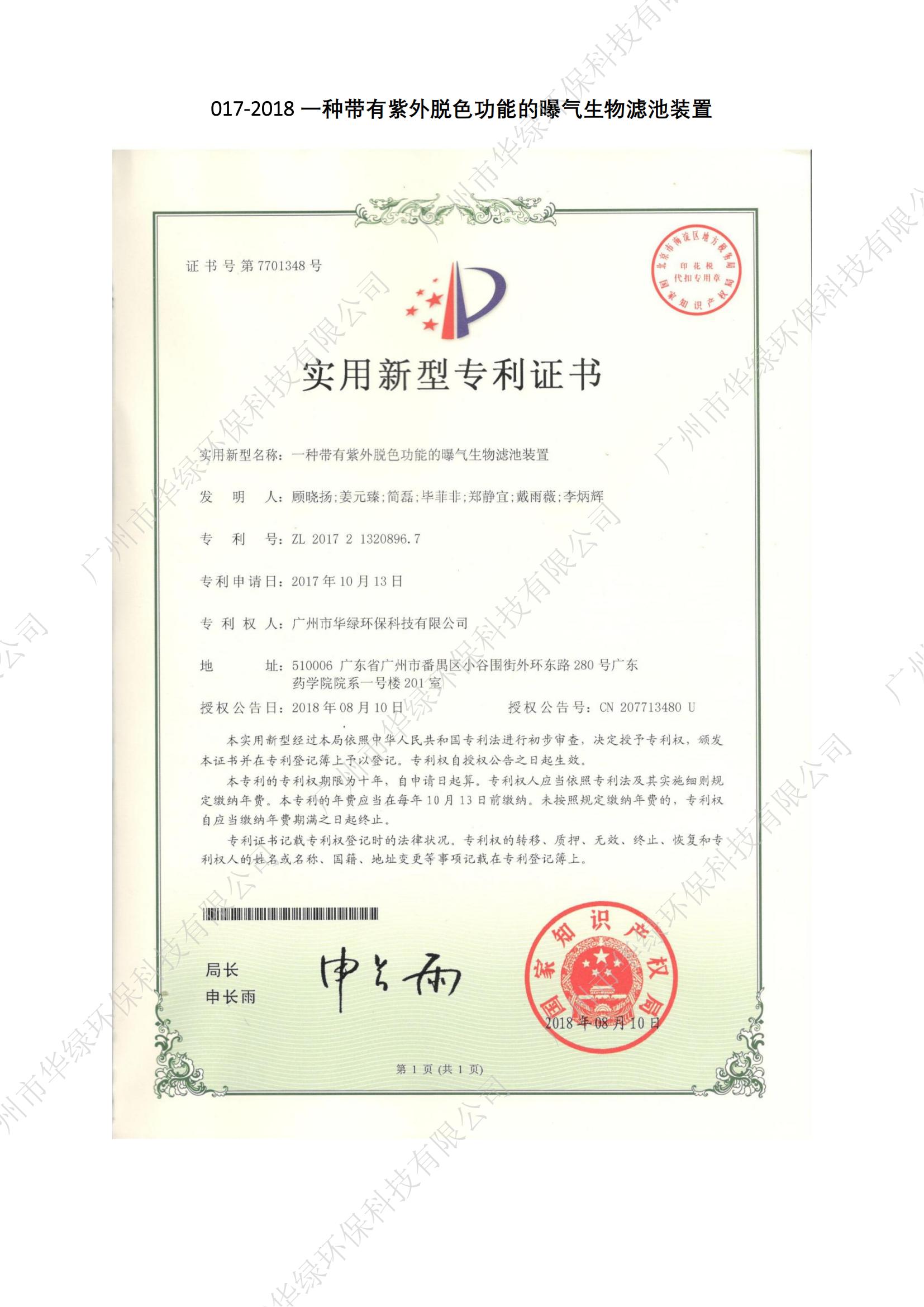 一種帶有紫外脫色功能的曝氣生物濾池裝置