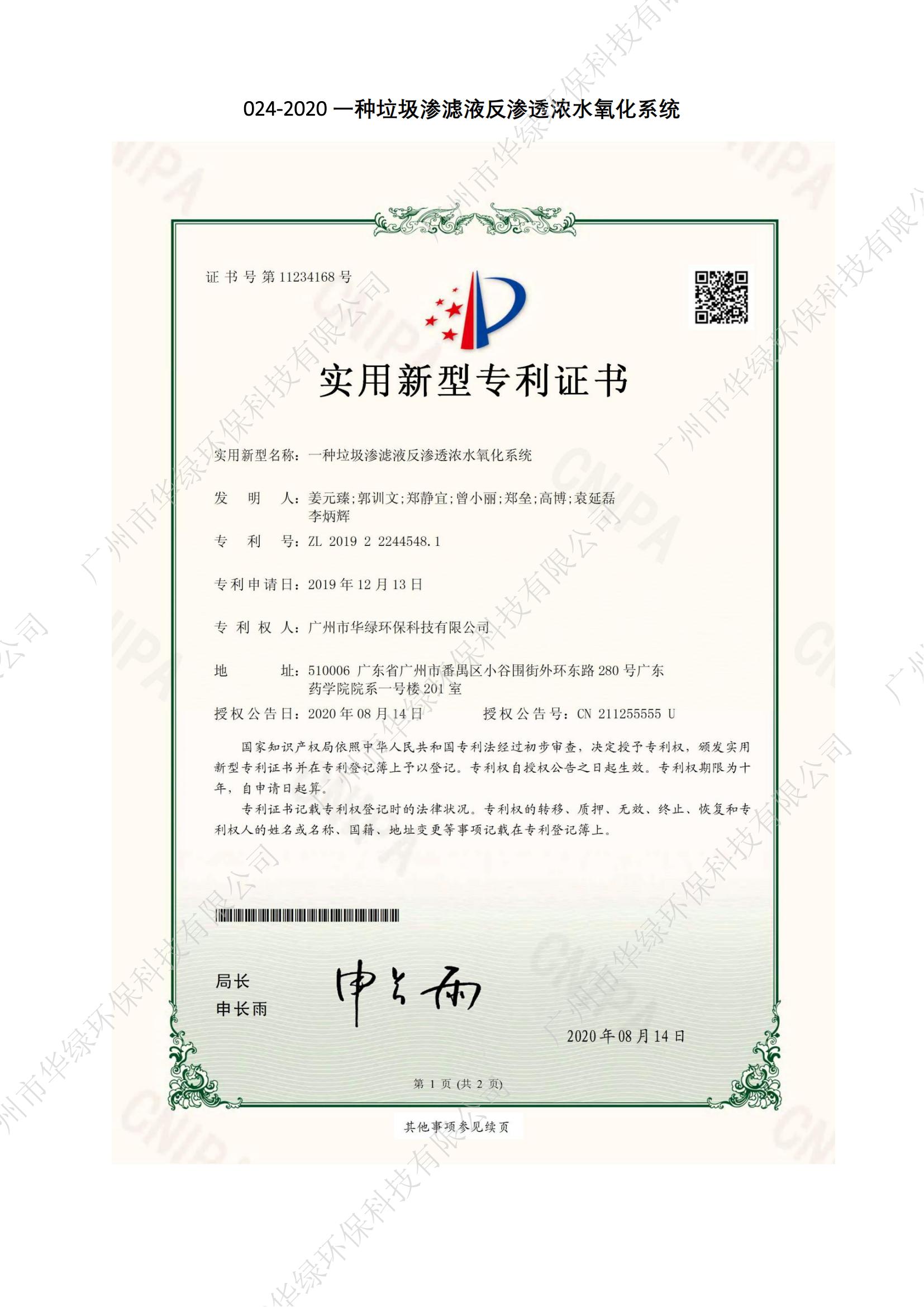 一種垃圾滲濾液反滲透濃水氧化系統(tǒng)