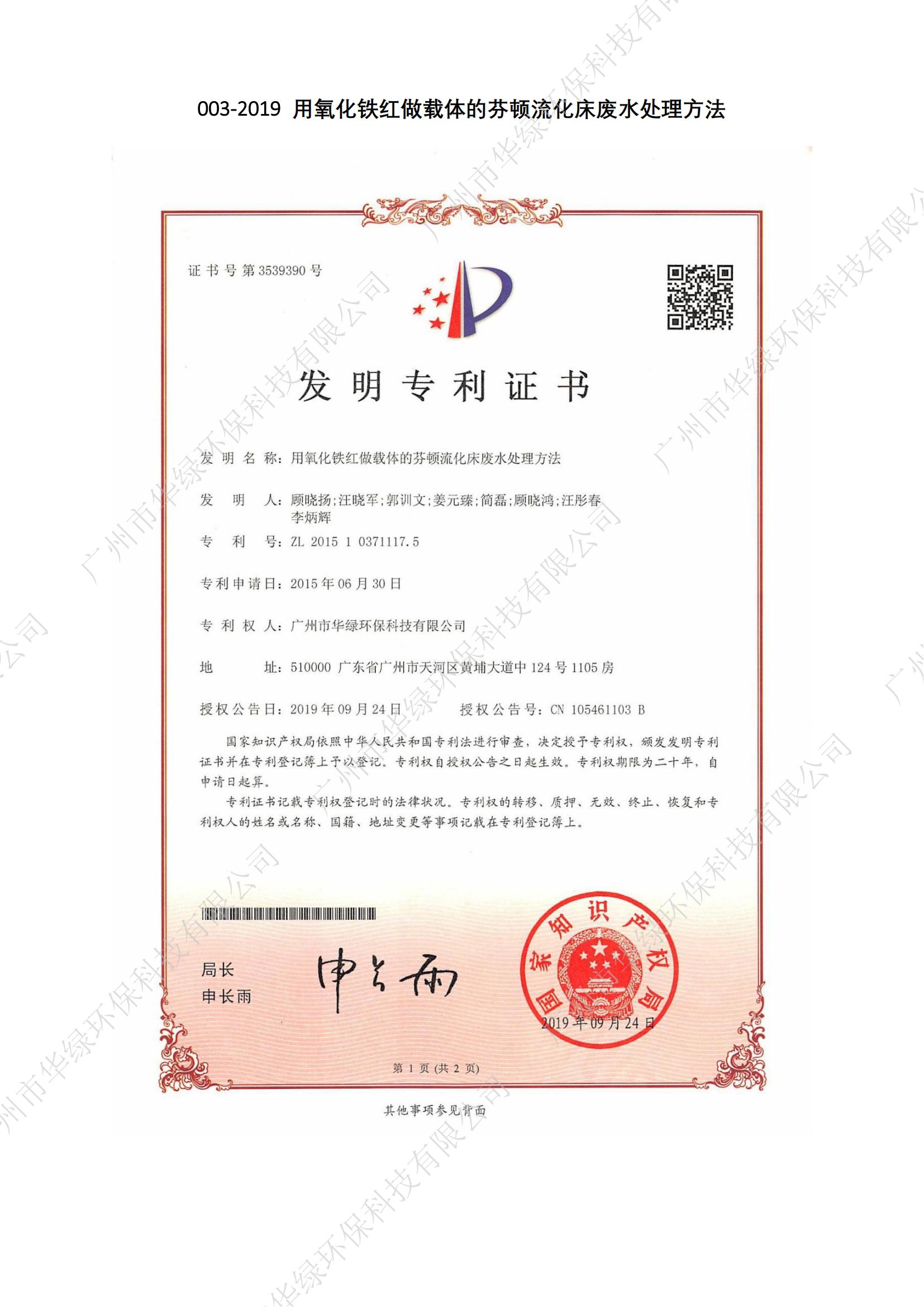 用氧化鐵紅做載體的芬頓流化床廢水處理方法
